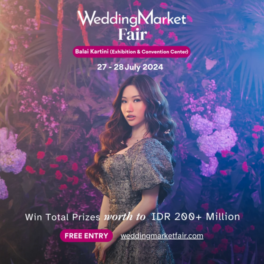 WeddingMarket Fair hadir untuk memenuhi kebutuhan pernikahan impian calon pengantin dengan berbagai vendor pernikahan terbaik! Menghadirkan 200+ booth vendor pernikahan dari 20+ kategori menjadikan WeddingMarket Fair sebagai salah satu pameran tematik pernikahan terbesar di Indonesia! Dengan mengusung konsep tema The Symphony of Archipelago, WeddingMarket Fair kali ini diselenggarakan pada: Tanggal : Sabtu dan Minggu, 27 - 28 Juli 2024 Pukul : 10.00 - 21.00 WIB Tempat : Balai Kartini Exhibition & Convention Center Dapatkan juga berbagai PROMO MENARIK & BERAGAM ACTIVATION selama pameran, seperti: - Kesempatan memenangkan Grand Prize berupa Sepeda Motor - Hadiah Langsung berupa Berlian, Voucher Hotel, Honeymoon, dan hadiah lainnya senilai ratusan juta. - Promo Spesial dari berbagai vendor - Voucher Discount untuk berbelanja selama pameran - Berbagai Talkshow seputar pernikahan - Serta Beragam dekorasi estetik dan photobooth menarik! Pesan tiket masuk sebelum berkunjung karena PERSEDIAAN TIKET GRATIS TERBATAS! Sampai jumpa di WeddingMarket Fair 2024